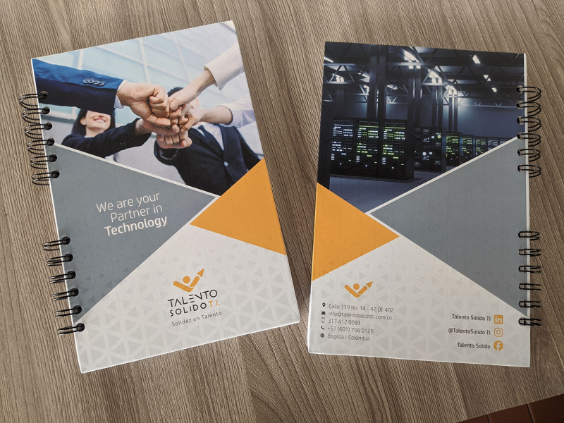 Terminado: Plastificado mate en tapas y guarda, uv parcial, argollado doble 00
