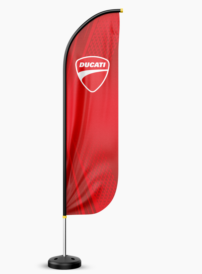 Banderines tipo pluma para publicidad exterior con impresión full color por ambas caras. Incluye soporte estabilizador para arena o agua y maletín de transporte. Perfecto para eventos, promociones y publicidad en alta visibilidad.